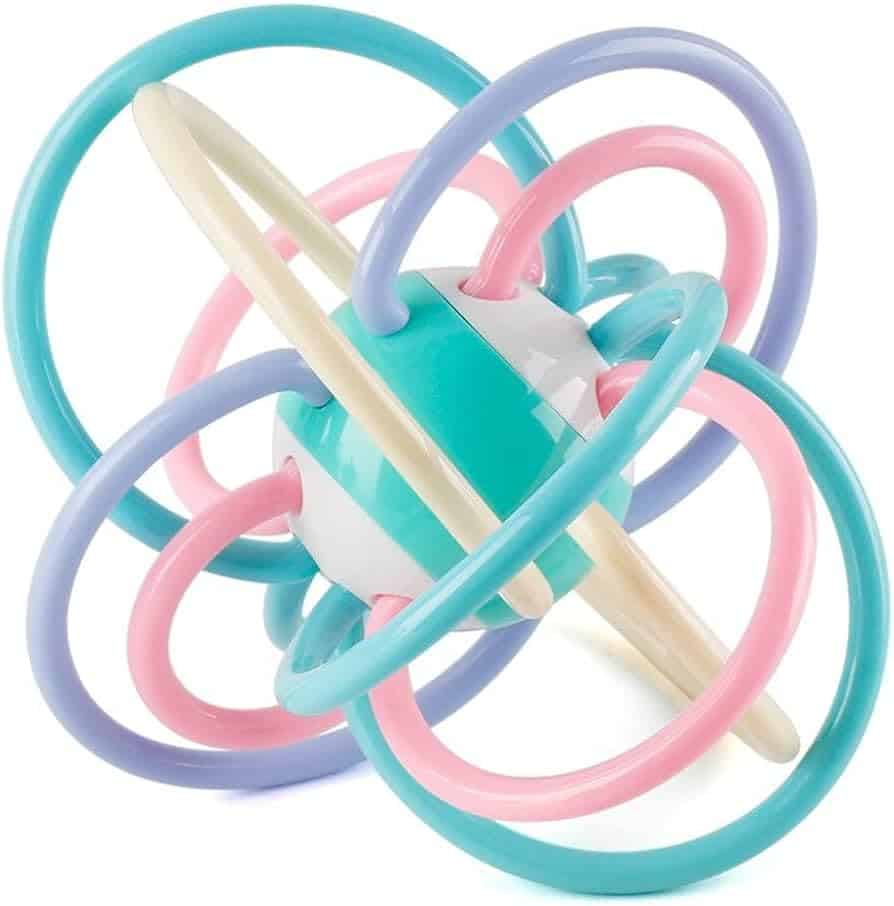 Bebeklerin kendi başlarına kolayca kavrayabilmesi sayesinde, çıngırak ve diş kaşıyıcının birleşimi mükemmel bir eşlikçi ve rahatlatıcı oyuncak haline gelir.