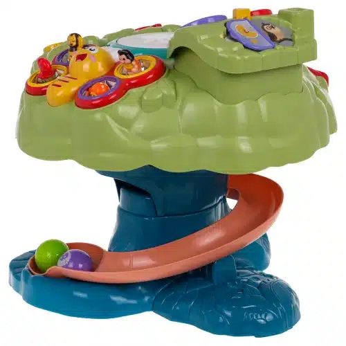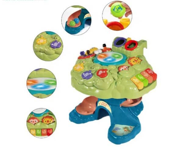 Oyuncakta ayrıca hareket ettirilebilen ve basılabilen figürlere sahip neşeli bir kelebek, sayıları öğreten bir elma bahçesi ve aşağı yuvarlanırken melodileri etkinleştiren bir top kaydırağı gibi oyunlar vardır.