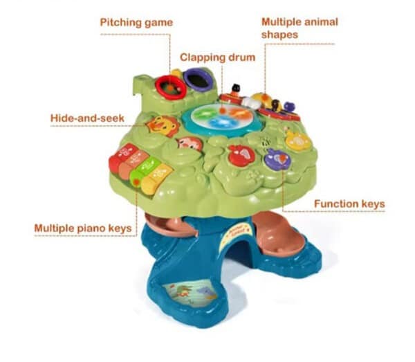 BT Wisdom Tree Aktivite Masası,çocukların duyularını ve becerilerini geliştiren çeşitli özelliklere sahiptir.