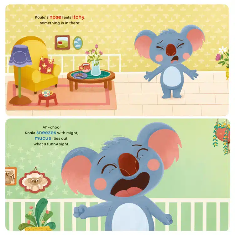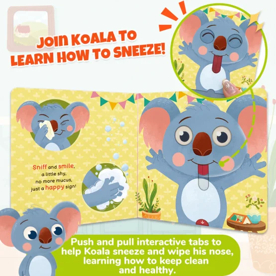 Koala’nın hapşırmasına ve burnunu silmesine yardımcı olmak için itme ve çekme özellikli etkileşimli sekmeleri kullanarak temiz ve sağlıklı kalmayı öğren.
