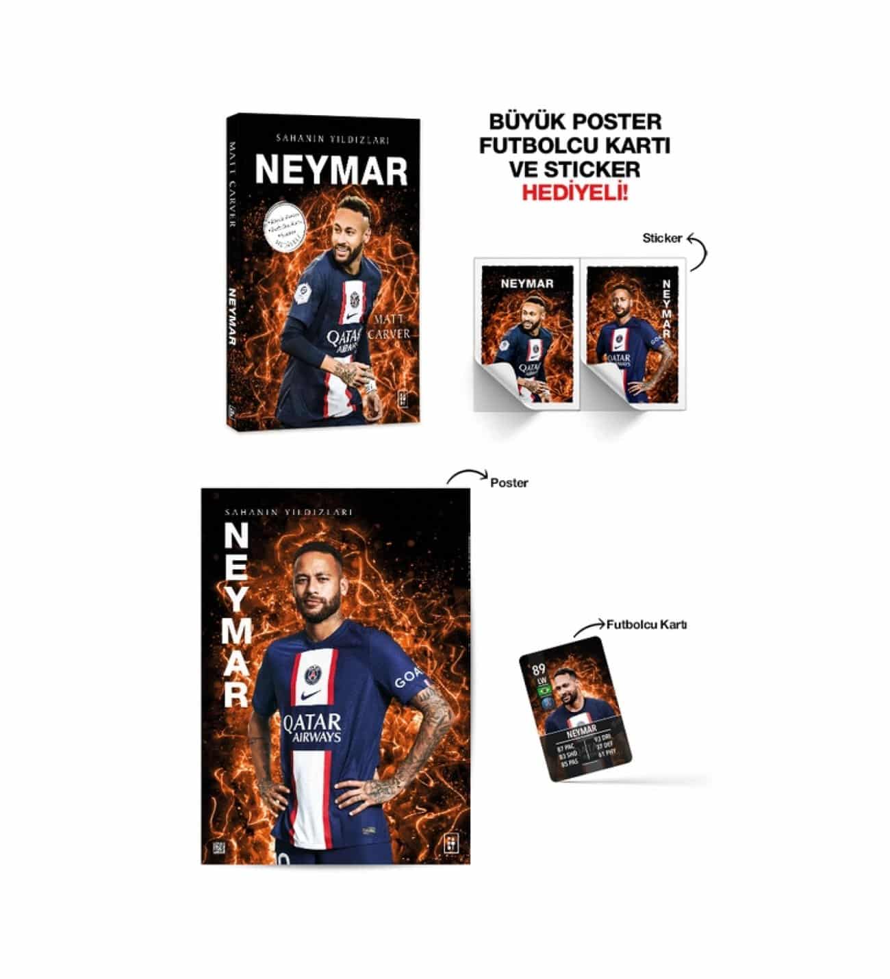 Her çocuk gibi o da sokaklarda top oynayarak başladı hayal kurmaya. Günün birinde Brezilya’nın yıldızı olacak ve desteğini her zaman hissettiği ailesini gururlandıracaktı. Yerel takımlarda başlayan futbol macerası, dünya çapında tanınan bir futbolcu olma yolundaki ilk durağıydı sadece. Sonrasında büyük sahnelere transfer olacak ve başarısı takım kaptanlığına kadar uzanacaktı. Bir dansçının zarafetine sahip olağanüstü becerileriyle attığı her golle de kendini kanıtlayacaktı. Yetenekleriyle sınırları zorlayan, oynadığı her maça renk katan ve futbolseverleri büyüleyen Brezilyalı futbol dehası, milyonları kendine hayran bırakırken futbol dünyasına getirdiği yeni solukla çoktan unutulmazların arasında yerini aldı bile. Neymar’ın hikâyesinde futbolun büyüsüne şahit olacak ve onunla inanılmaz bir yolculuğa çıkacaksınız.