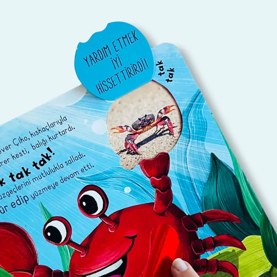 Dokun hisset maceramız şimdi de okyanusta. Uykucu bir palyaço balığı, oyun oynamayı seven bir yunus ve diğer okyanus dostlarımız bu kitapta hayat buluyor. O halde sen de derin bir maceraya dalmaya hazır mısın? Okyanusta rengârenk bir gezinti seni bekliyor!