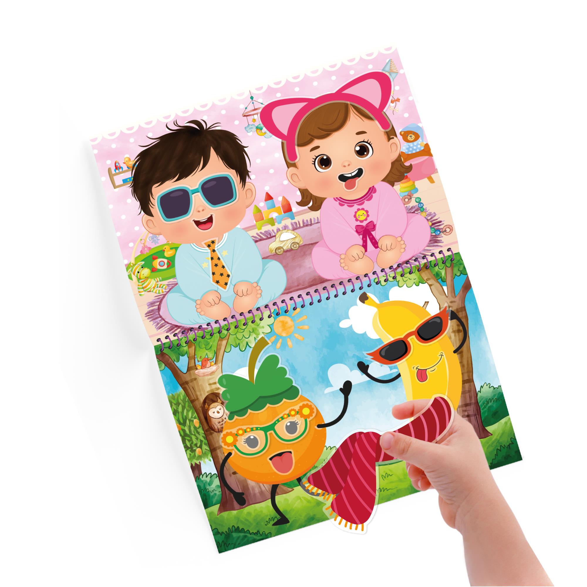 Çocuğunuz stickerları tekrar tekrar kullanabilir. Yapıştığı yerden rahatlıkla çıkarıp geri yapıştırabilir. 4 farklı sayfadaki 100’den fazla tekrar kullanılabilen sticker ile çocuğunuz eğlenceli sahneler oluşturabilecek.
